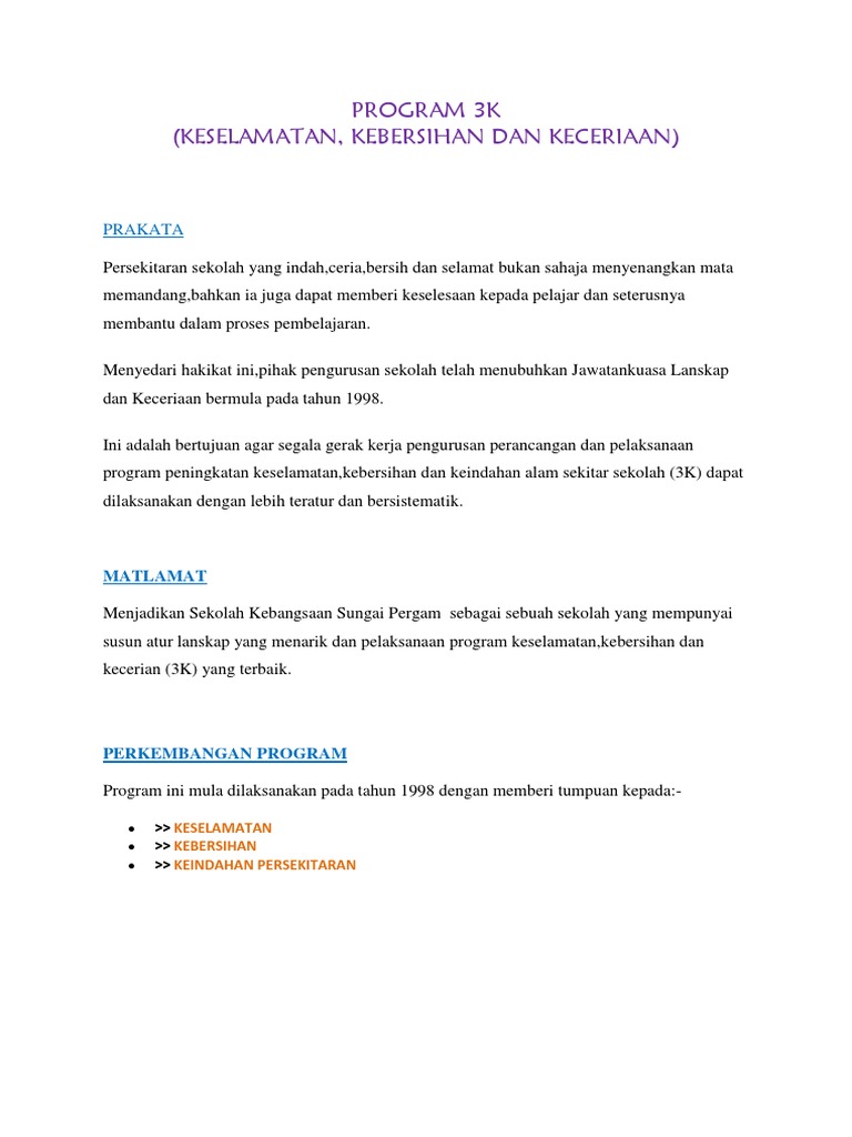 Doc Kertas Kerja Program 3k Sk Nanga Antaroh Kapit Nina Bobo Academia Edu